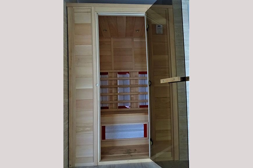 Чаще всего, стены ИК сауны выполнены из древесины: кедр, сосна, липа. Благородное дерево не только верно служит много лет, но и выделяет полезные фитонциды при нагревании. Двери мини-комнаты изготавливаются из закаленного стекла.